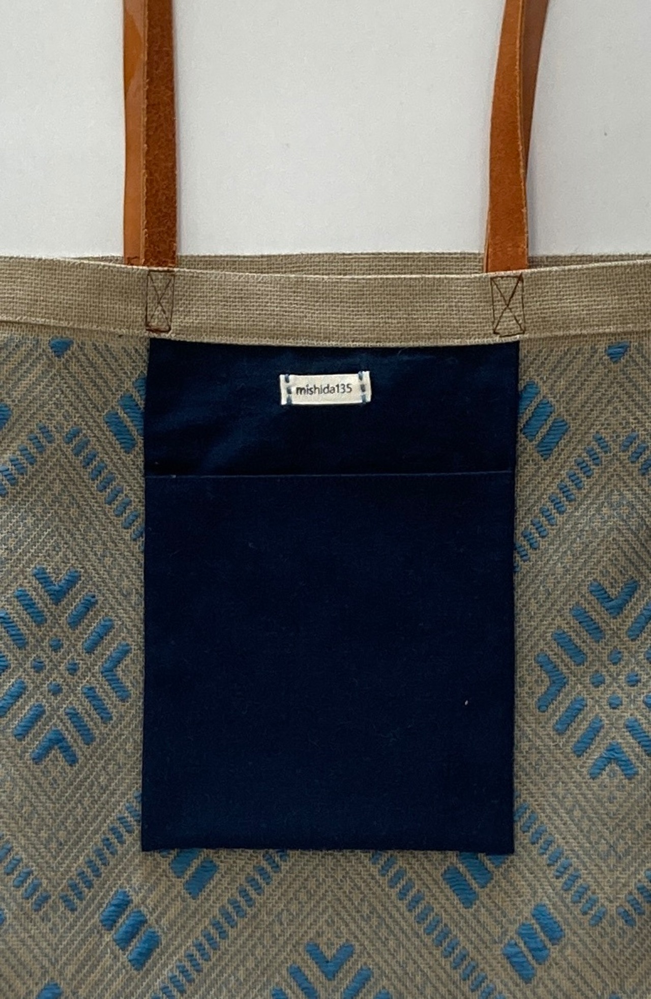 *kosakuの基本のショルダートートは内布をつけません。裏模様も美しいこぎん刺しを楽しんでください。