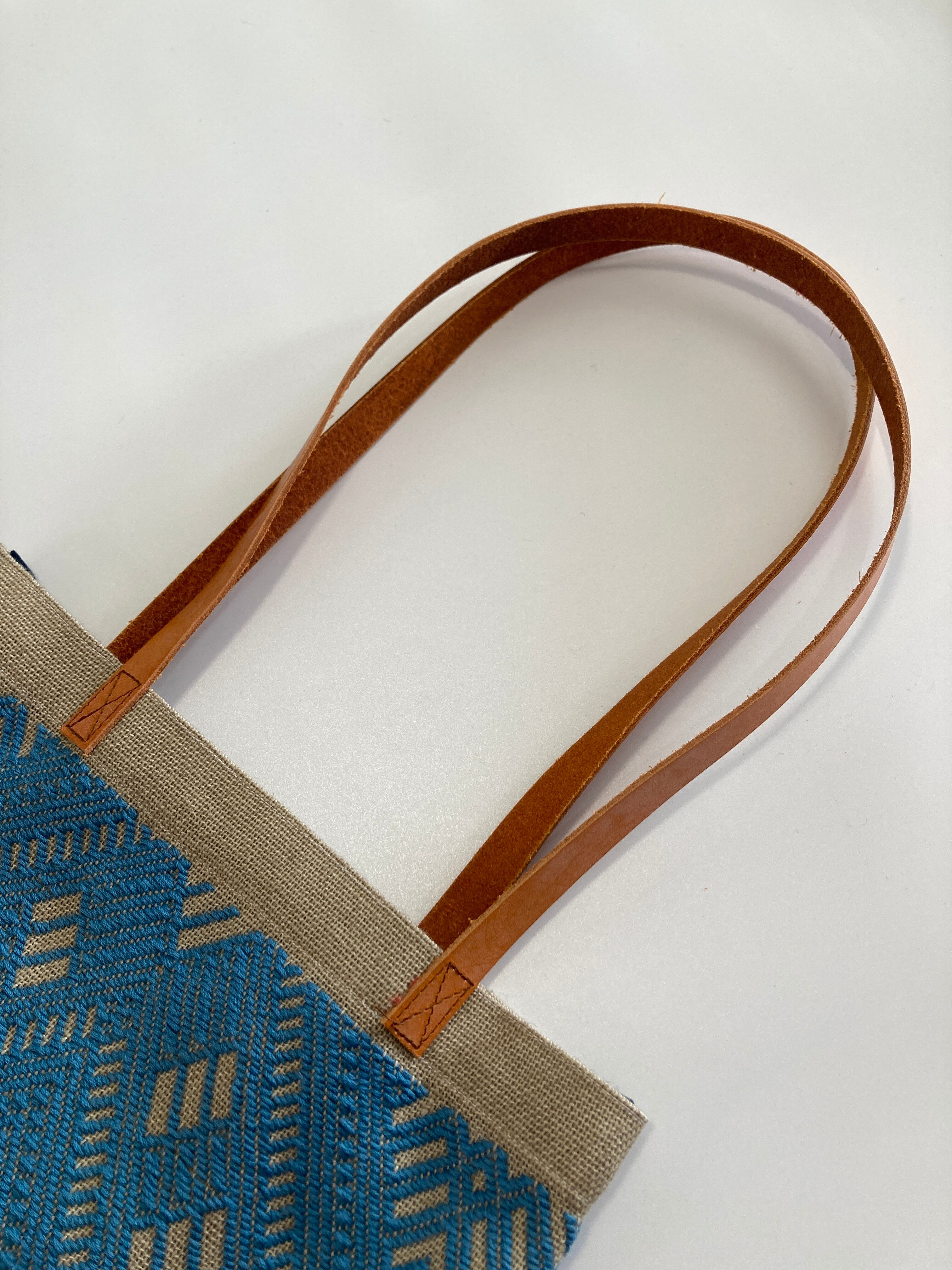 シンプルな形、布バッグならではの軽さ、A4書類も入るサイズの、毎日気軽に持ち歩いて欲しいこぎん刺しバッグです。